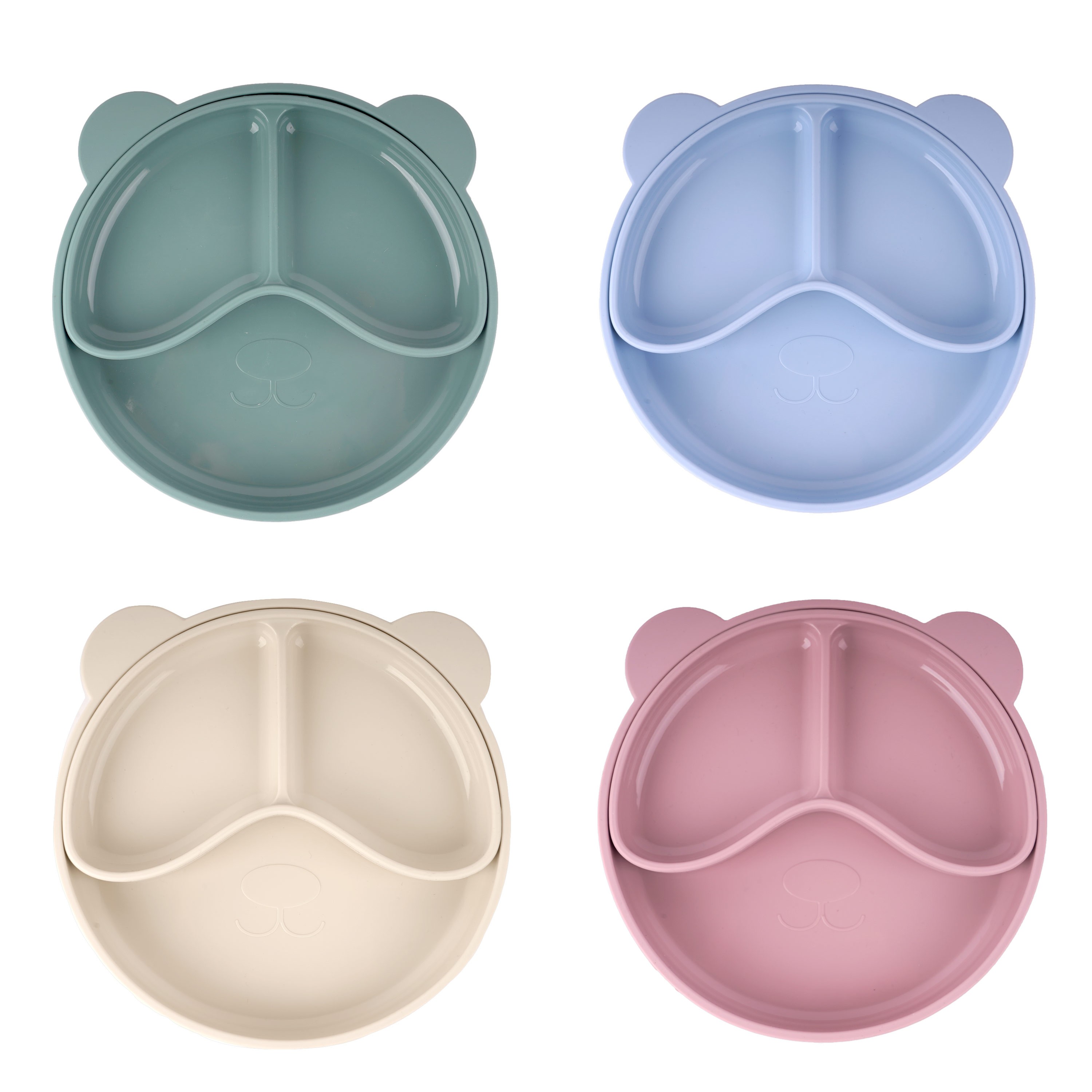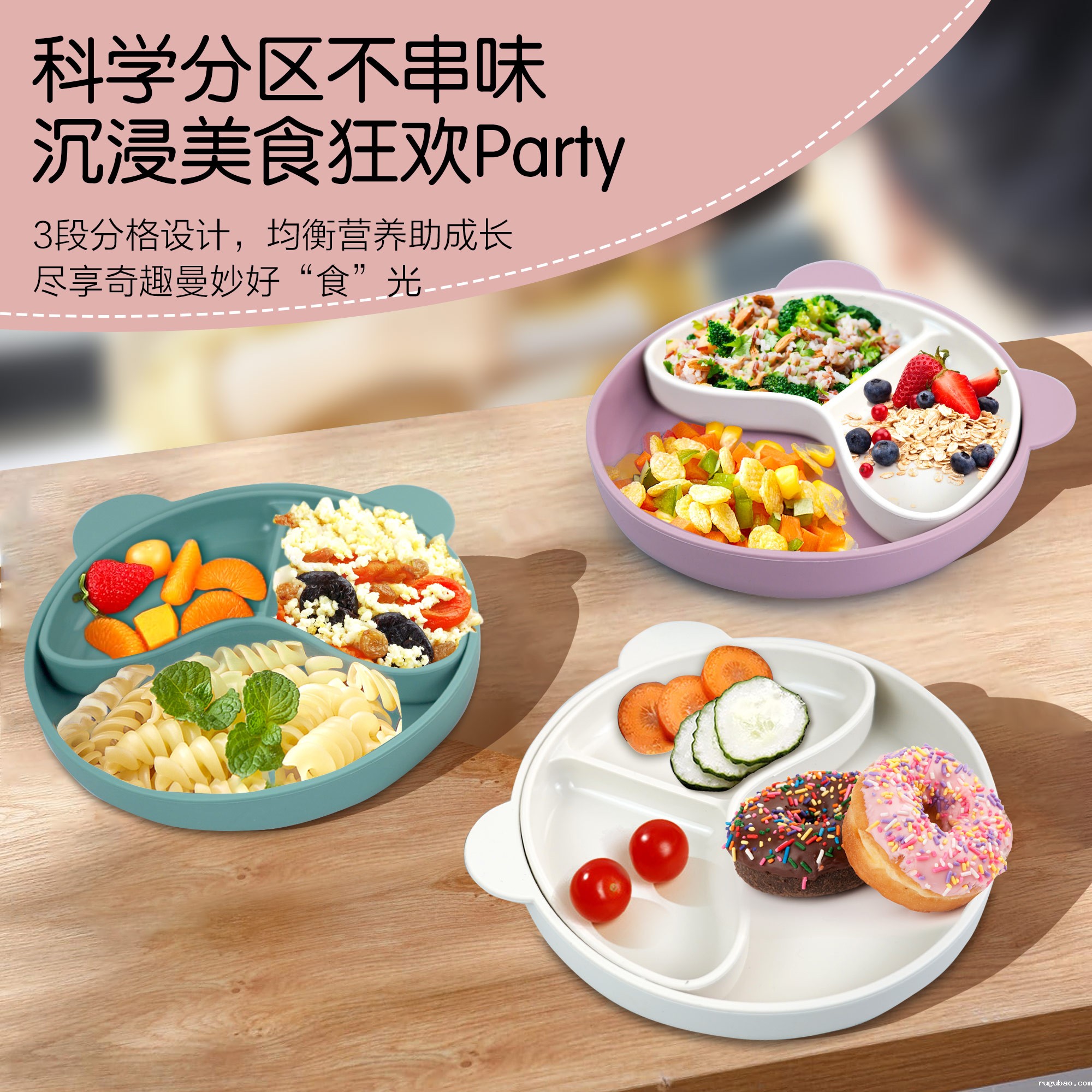 宝宝热销餐盘可拆分食品级硅胶分隔盘辅食吸盘三格儿童硅胶餐盘