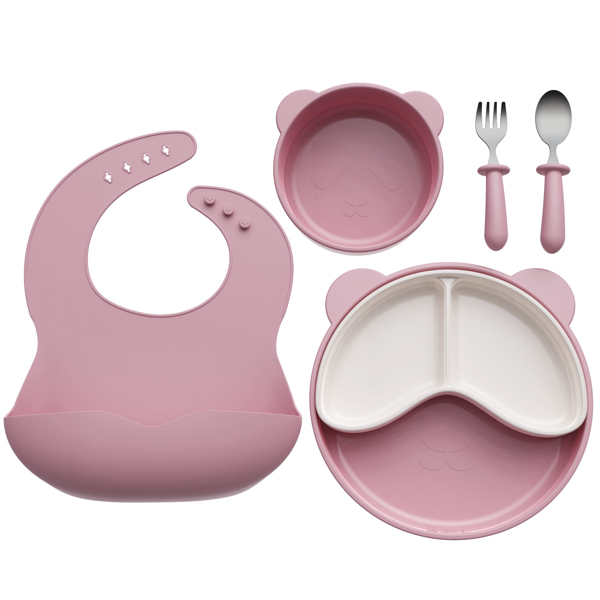 6件套分隔盘母婴喂食套装母婴分格婴儿硅胶餐盘
