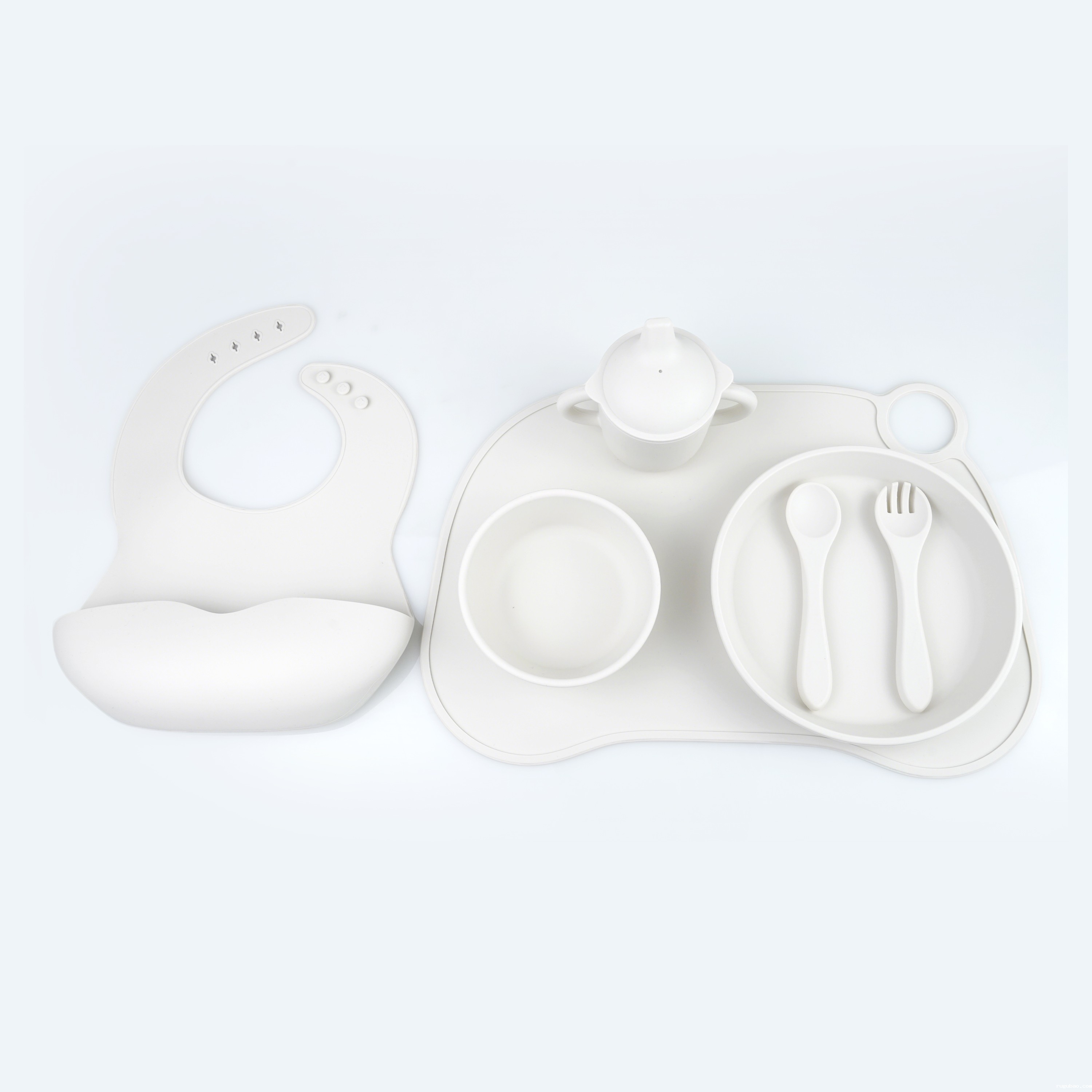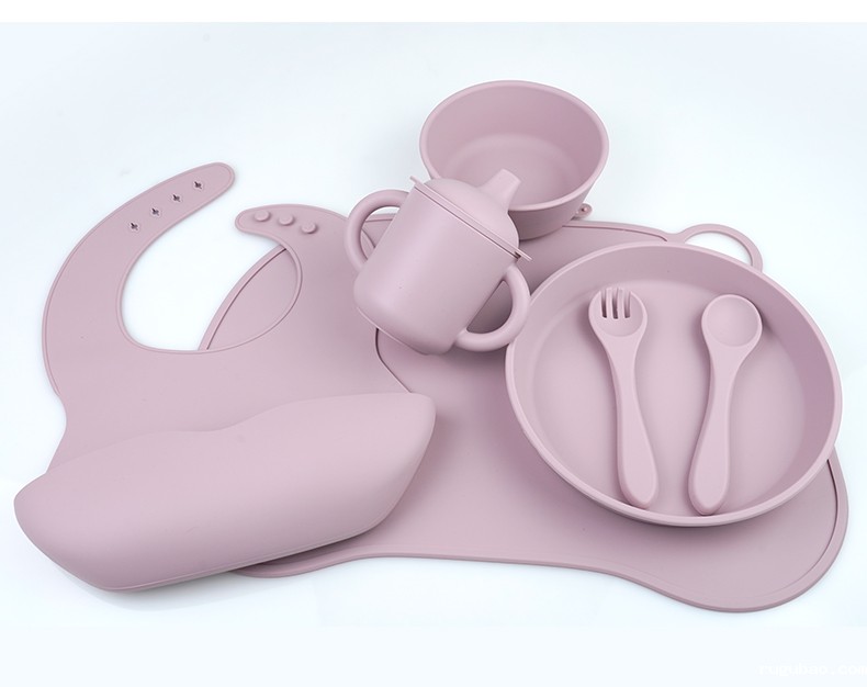 口水兜+碗+叉勺+餐盘+学饮杯+餐垫