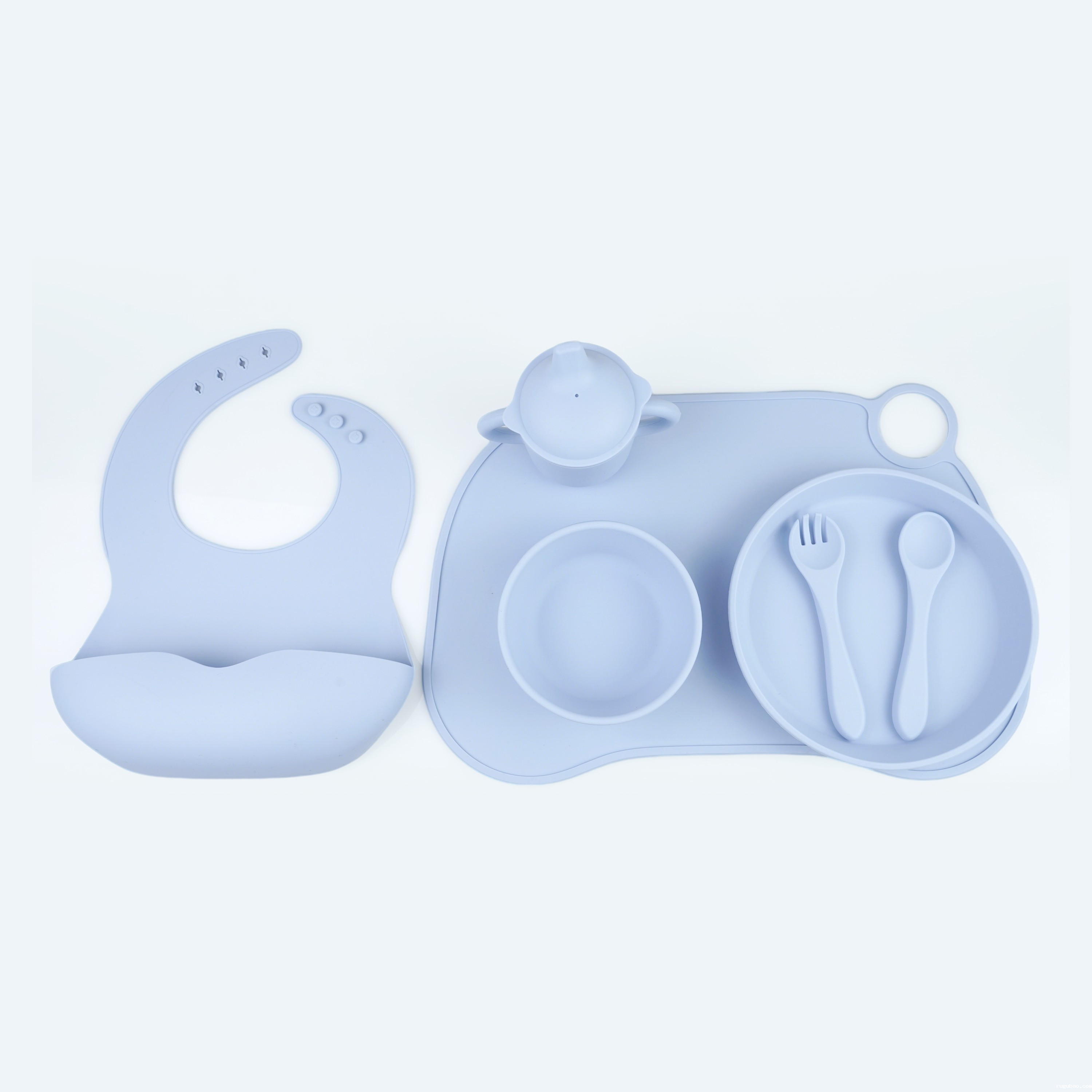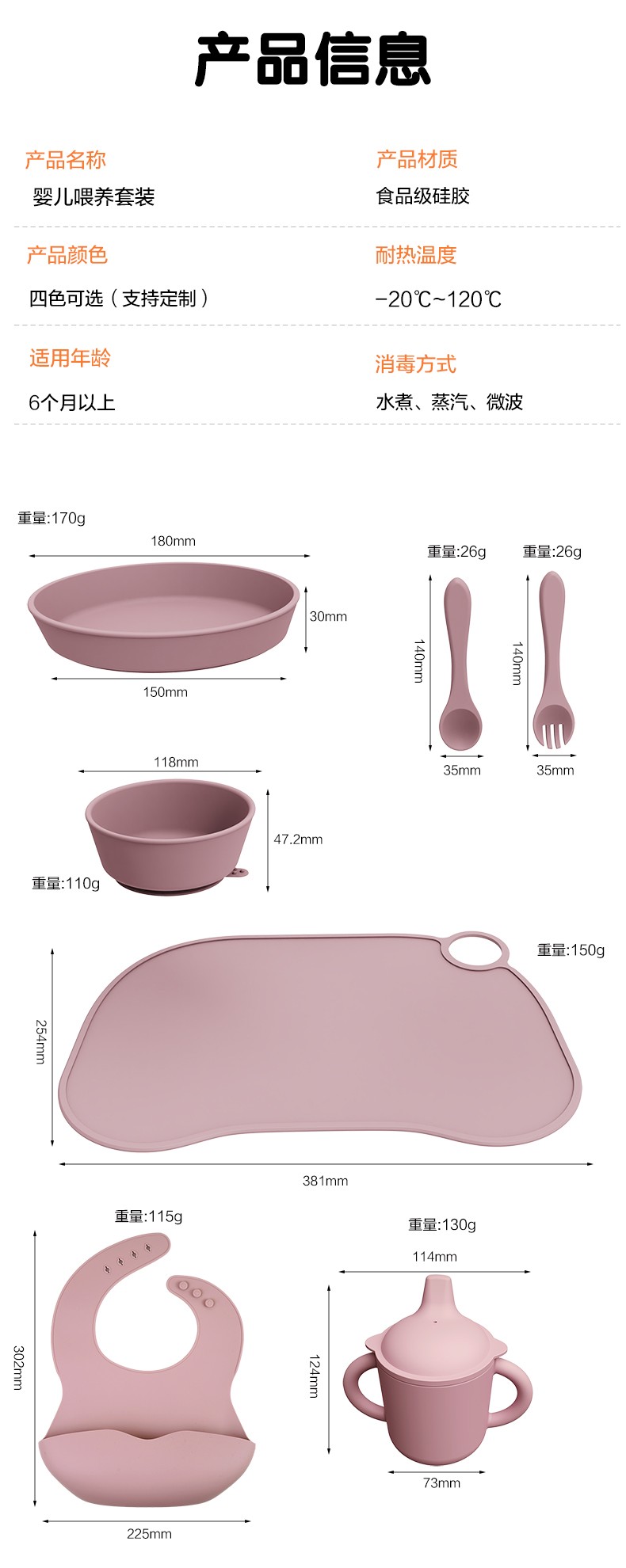 6件套分隔盘母婴喂食套装母婴分格婴儿硅胶餐盘