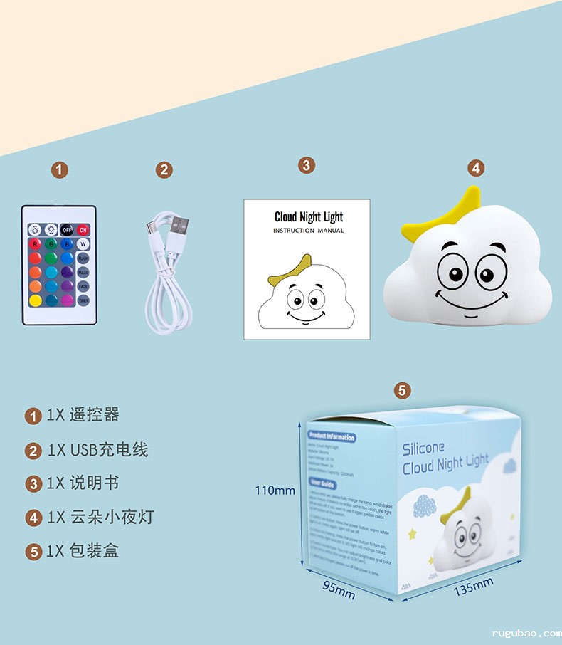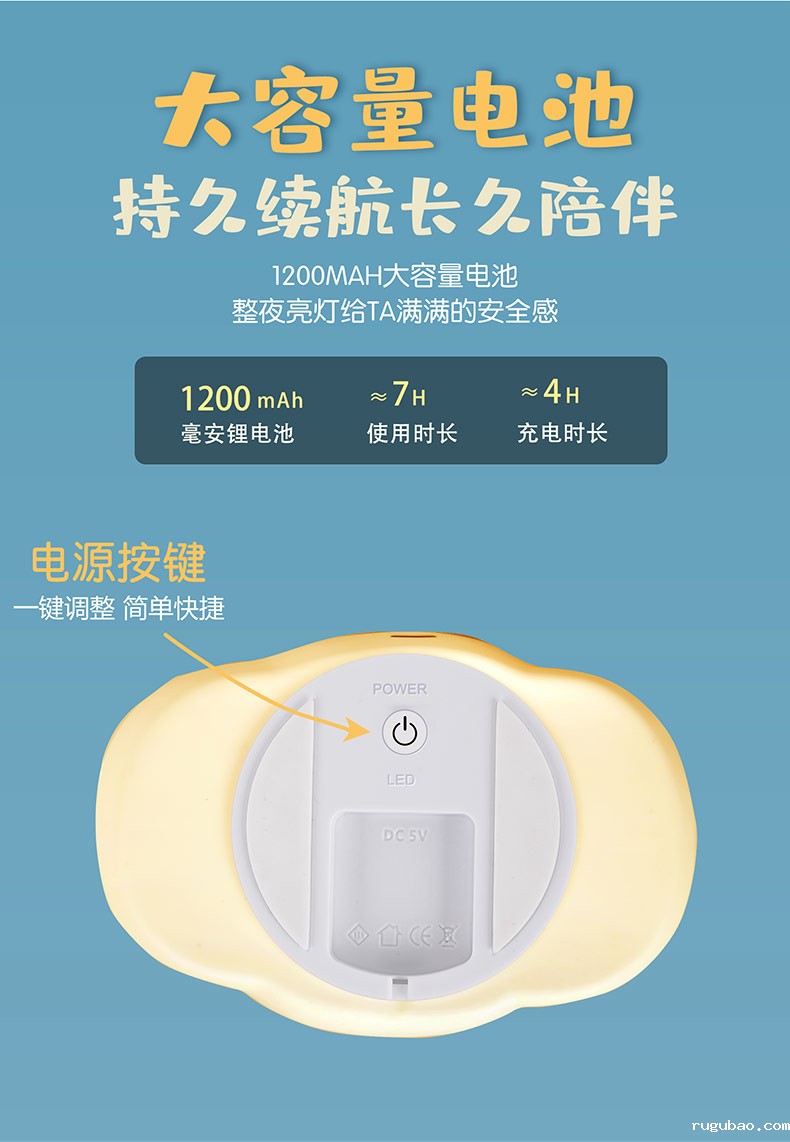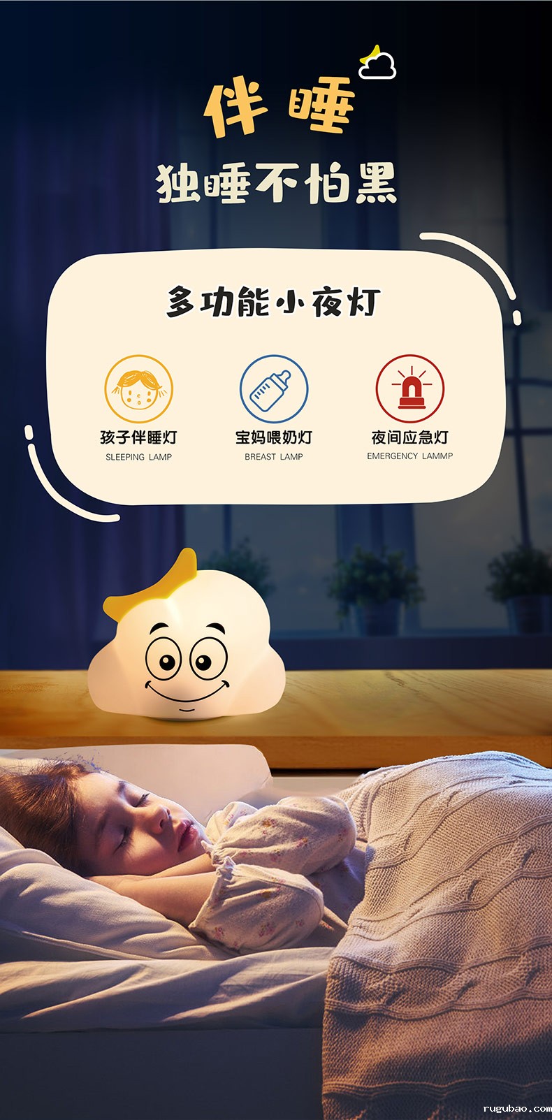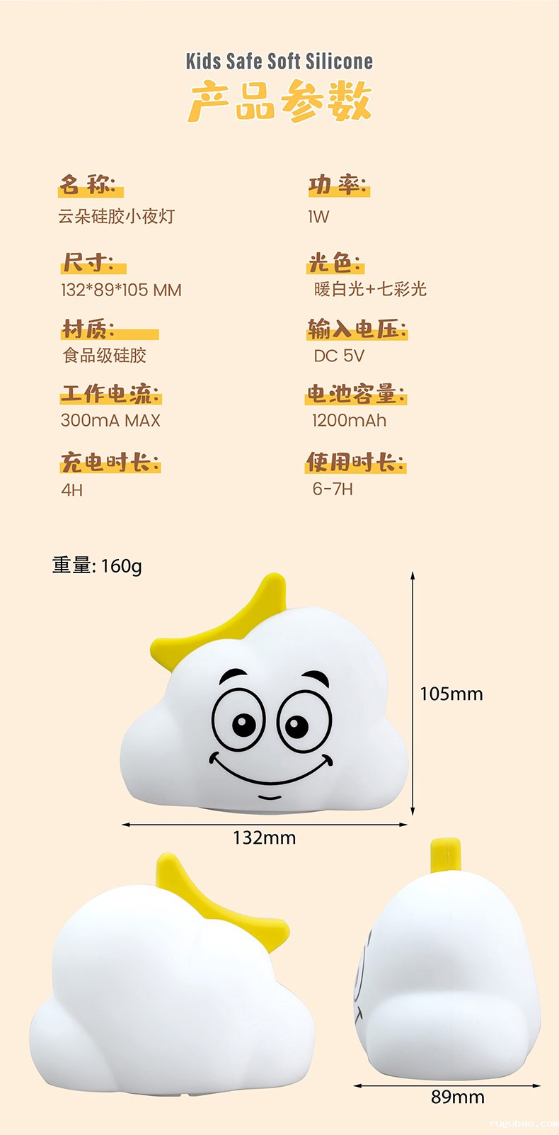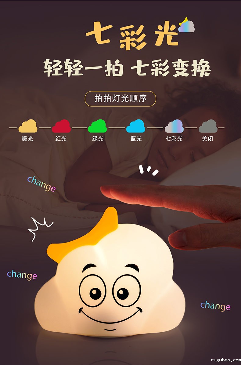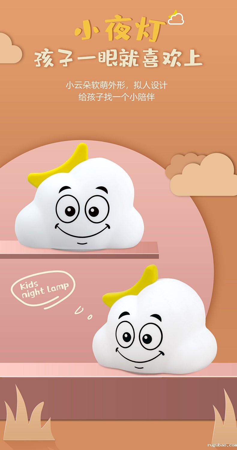 云朵硅胶小夜灯 儿童玩具卧室氛围灯 网红生日礼物床头伴睡拍拍灯