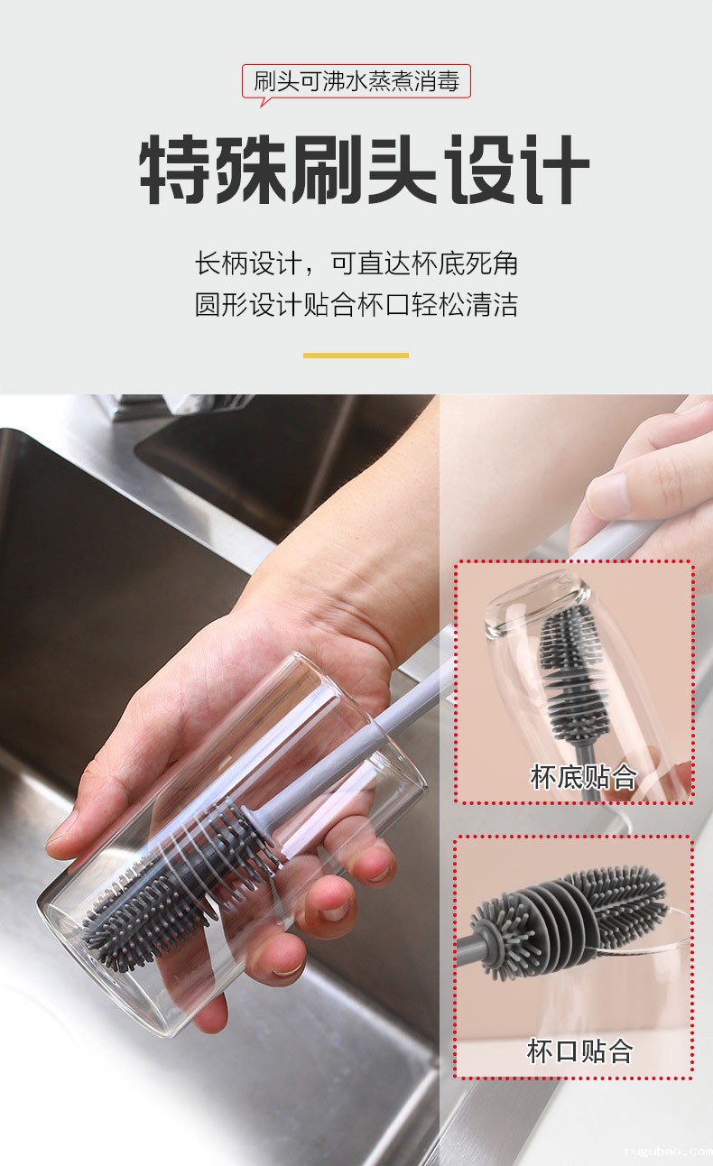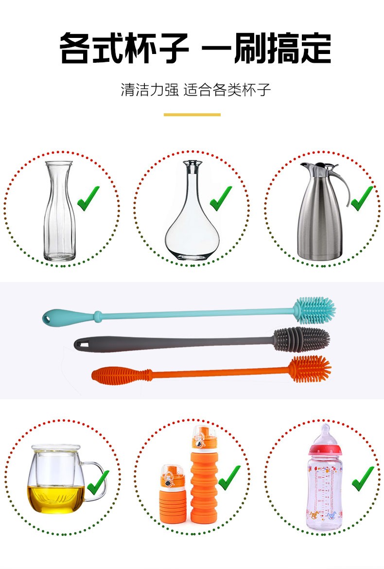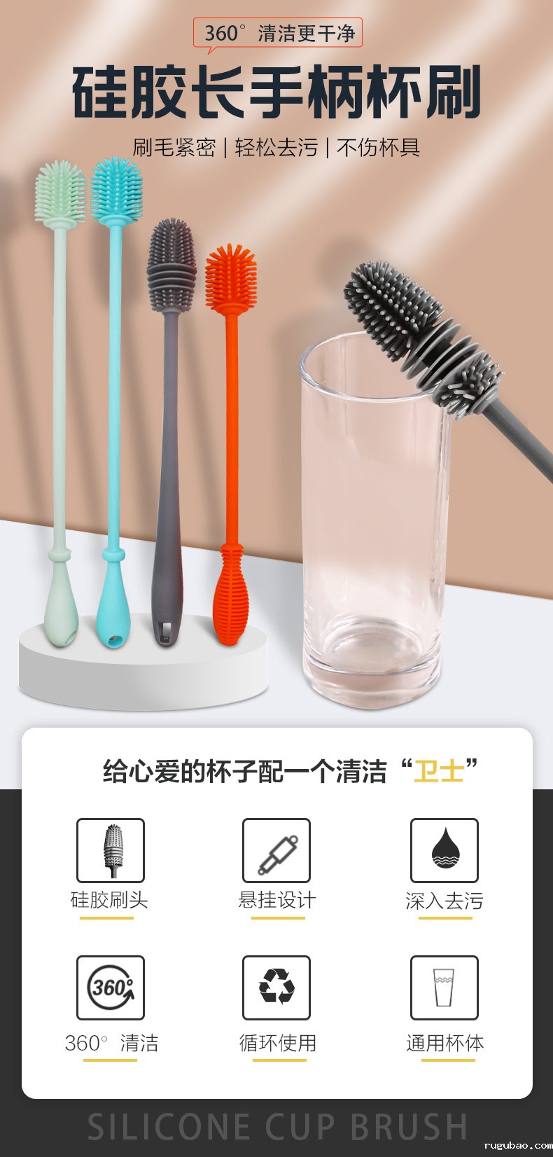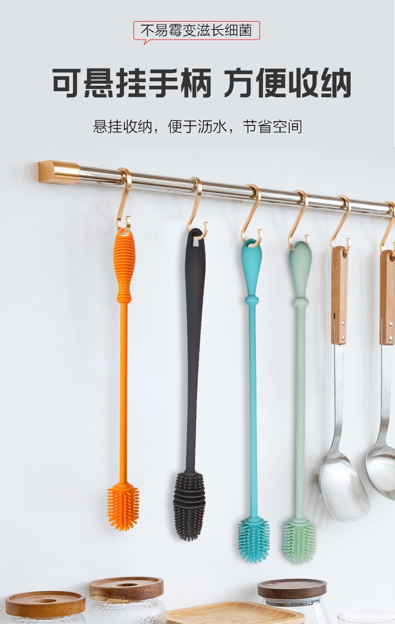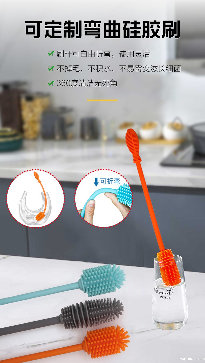 给心爱的杯子配一个硅胶刷,可以360度清洁水杯内壁,刷头采用食品级硅胶,不含BPA,无异味,相比海绵瓶刷不容易变形,不容易残留水分滋生细菌。适合各类杯子的清洁。科泰利作为一家硅胶制品OEM厂家,有能力也有条件定制可弯头的硅胶刷,人性化的设计,易悬挂便利沥水,节约空间。